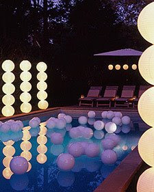 2. Stack paper lanterns (ours were 14 inches in diameter) over the stick. Secure the lanterns to each other with tape. Note: If you intend to place these fixtures by a swimming pool, it is imperative that you plug the lights into GFCI outlets and use extension cords approved for outdoor use.”